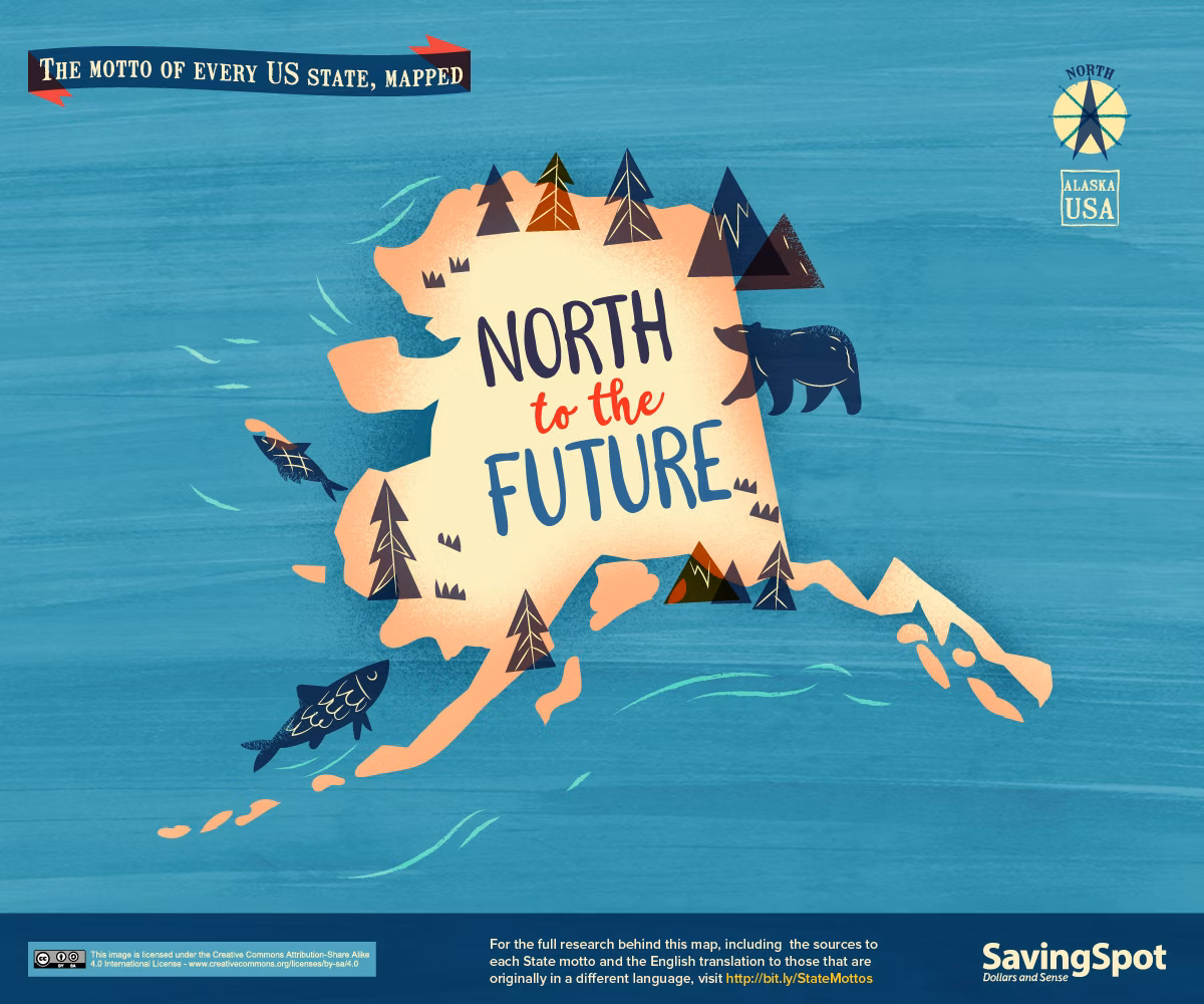 The state motto of Alaska, "North to the Future," encapsulates the indomitable spirit of the state and its residents. It represents the constant pursuit of progress, growth, and new horizons. Alaska's motto serves as a unifying force, inspiring Alaskans to embrace change and work towards a better future. In a state known for its awe-inspiring landscapes and untamed wilderness, the motto serves as a reminder that Alaska will always be at the forefront of new frontiers.
