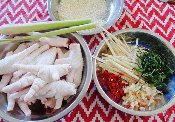 Khi chuẩn bị các nguyên liệu cho món ăn này bạn cần lưu ý má»™t số Ä‘iểm sau. Äầu tiên, khi lá»±a chá»n chân gà, nên lá»±a chá»n những chân múp, chắc, màu sắc tươi sáng và không có mùi khó chịu. Sả chá»n cá»§ to, nhiá»u tinh dầu và có mùi thÆ¡m.