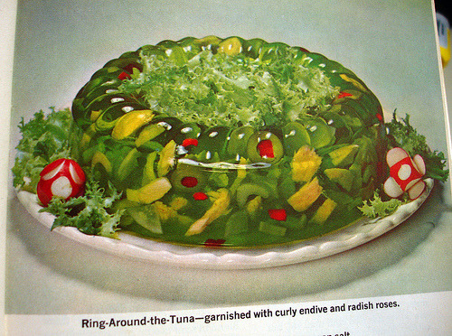- Tuna and Egg Mold: A savory twist on the traditional sweet Jello mold, featuring canned tuna, hard-boiled eggs, and vegetables suspended in gelatin.