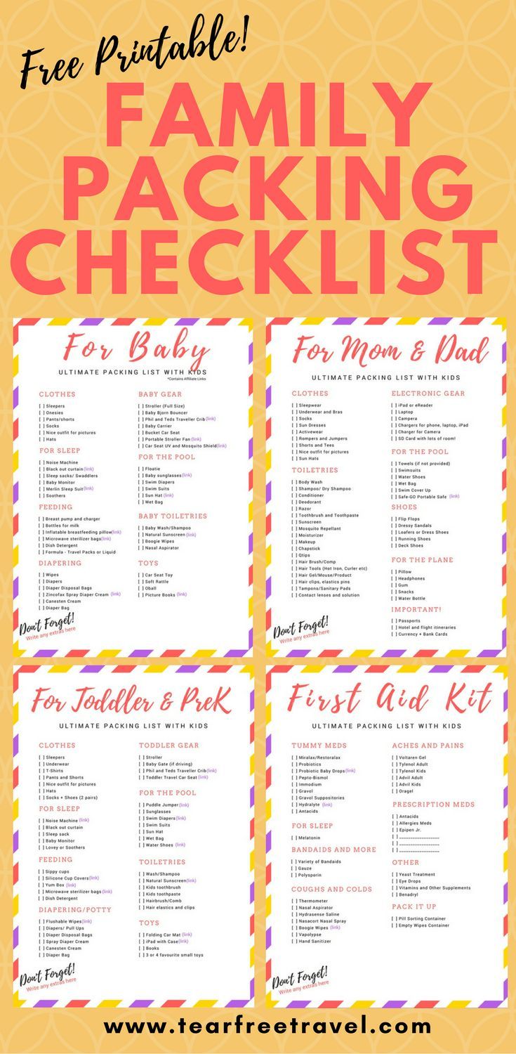 family vacation packing list printable