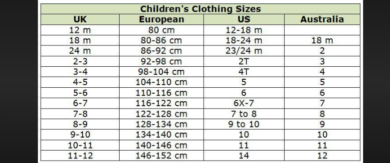 Children's clothing sizes