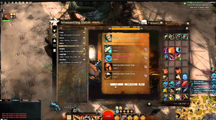 - Ensure you have reached a high level of mastery in the relevant crafting discipline. Ascended gear crafting requires a high crafting level.